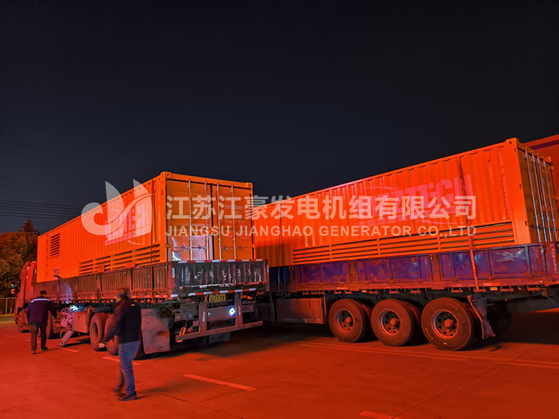 三臺2000kW三菱集裝箱式柴油發電機組發貨我公司工程師對機組進行了全面的出廠前檢測調試后,各項指標符合國家標準,下圖為機組出廠現場