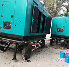 柴油發電機組、柴油發電機,一臺20KW和50KW玉柴柴油發動機,配上海恒聲發電機,我公司生產的移動式靜音發電機組噪音小于70分貝,可以隨車拖動,適用于戶外電力需求。下圖為機組調試現場: